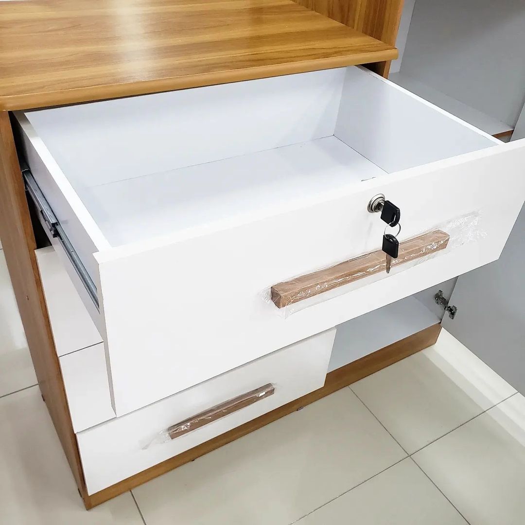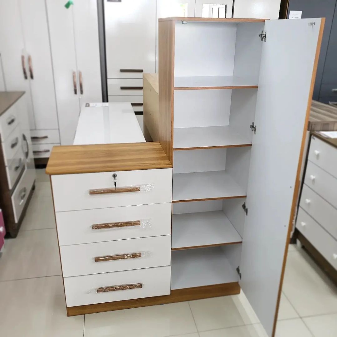 Cômoda Multiuso com Espelho 1 Porta 4 Gavetas Thor A cômoda/multiuso Thor com seu design que agrega excelentes repartições e amplo espaço interno ,traz de forma moderna e elegante uma amplitude e variáveis de montagem diversas, sendo que pode ser montada cômoda e multiuso junto ou separadamente ,com prateleiras ou prateleiras e cabideiro, tudo em um só produto. Sua estrutura 100% MDF e porta de alumínio com espelho dá uma harmoniosa beleza ,qualidade e durabilidade ao produto